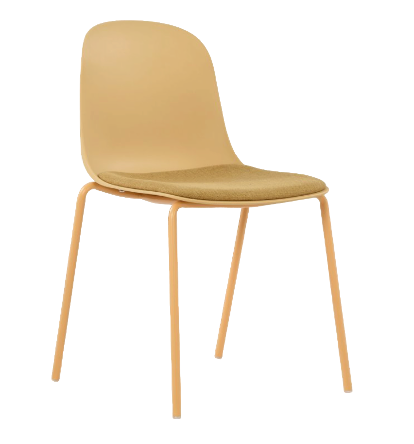 Описание: каркас-цельно литой пластик, цвет желтый. Сиденье-накладное, текстильная обивка. Ножки-стальные, порошковая окраска в цвет пластикового корпуса.
