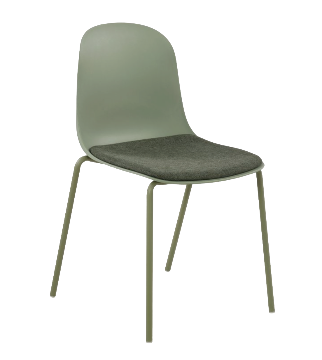 Описание: каркас-цельно литой пластик, цвет оливковый. Сиденье-накладное, текстильная обивка. Ножки-стальные, порошковая окраска в цвет пластикового корпуса.
