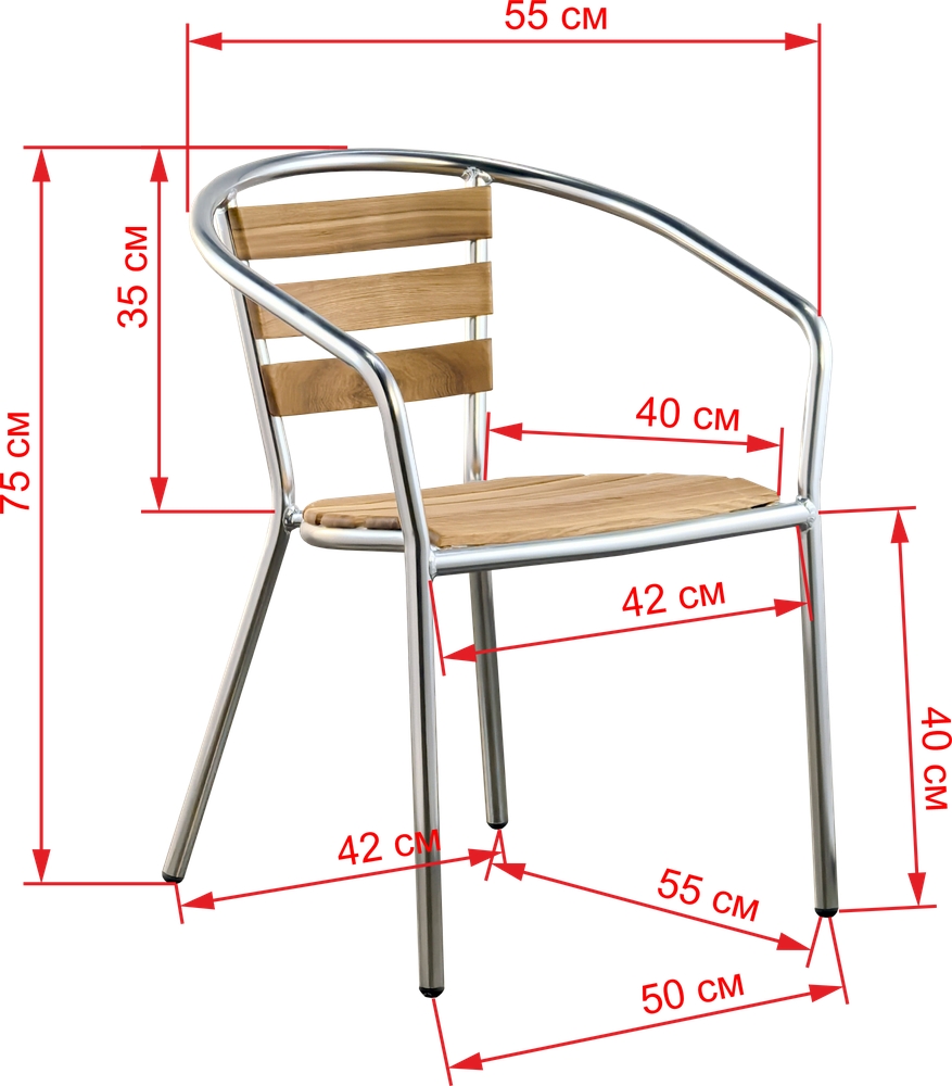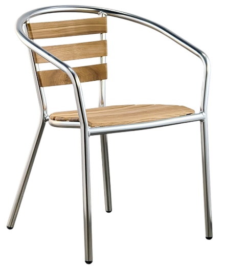 Стул алюминиевый. Каркас: алюминиевая труба на сварных швах, полированная до зеркального вида. Параметры трубы: Ø25, толщина стенки 1.2мм. Сиденье и спинка: дерево. Стулья стопируемые. В стопке 21 шт.