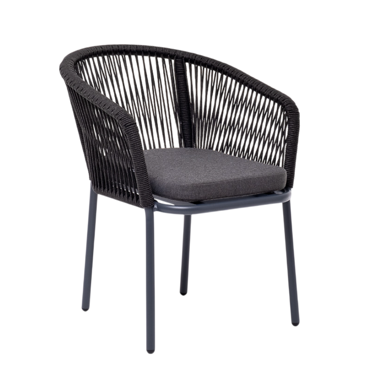 - Описание: Плетеный стул. Каркас из прочного алюминия окрашен порошковой краской, ручная оплетка - роуп.