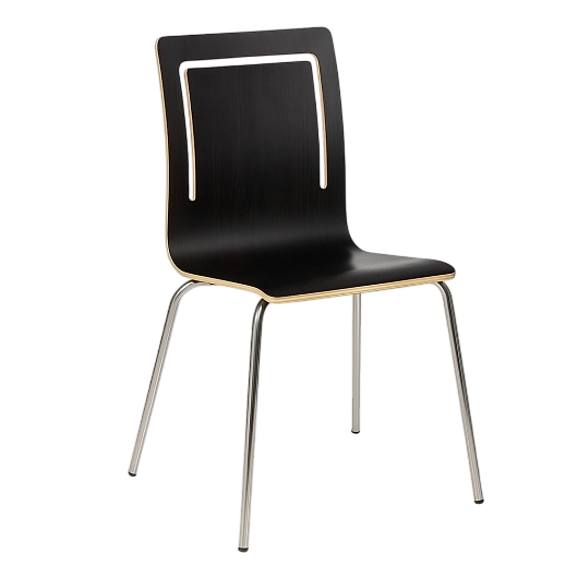 Стул металлический. Каркас -хромированная сталь, спинка и сиденье - жесткое. Сиденье - ламинированная фанера. Цвет: венге.