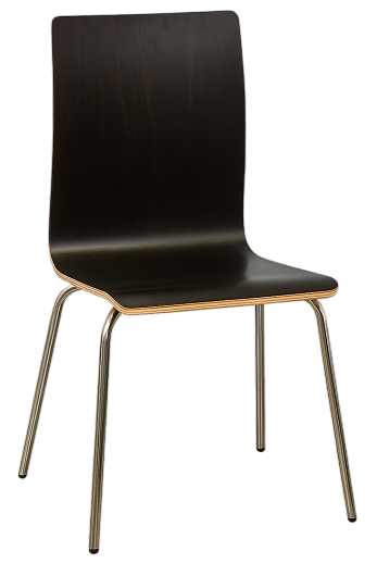Стул металлический. Каркас -хромированная сталь, спинка и сиденье - жесткое. Сиденье - ламинированная фанера. Цвет: венге.
