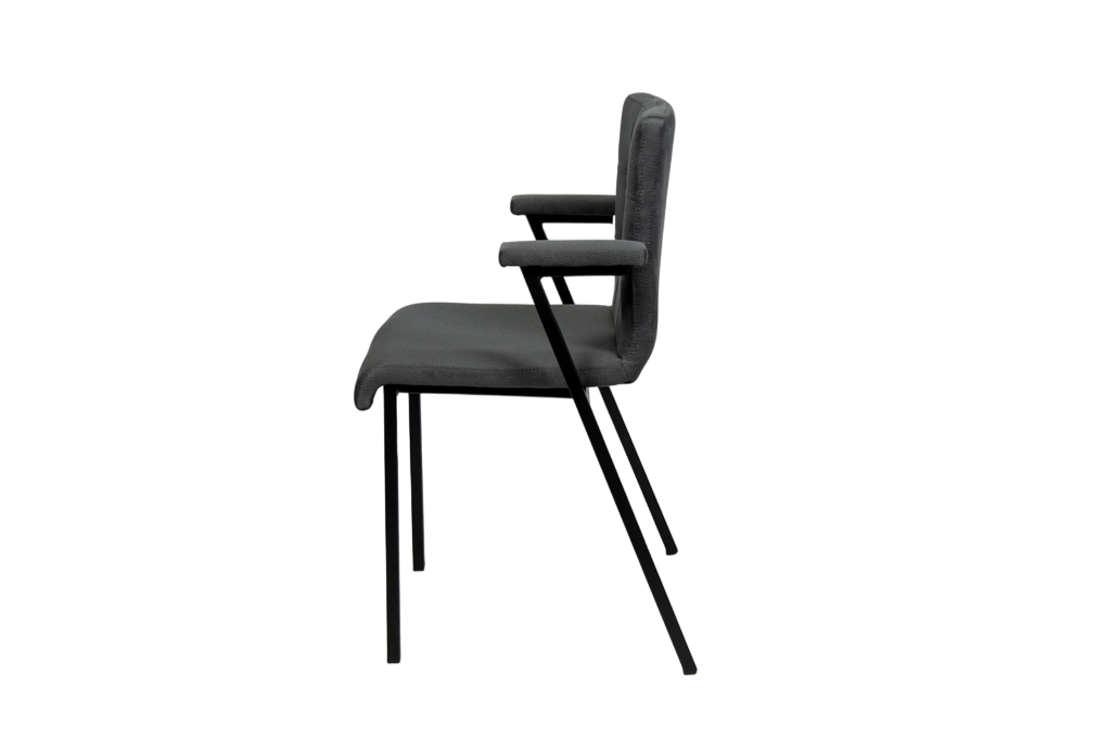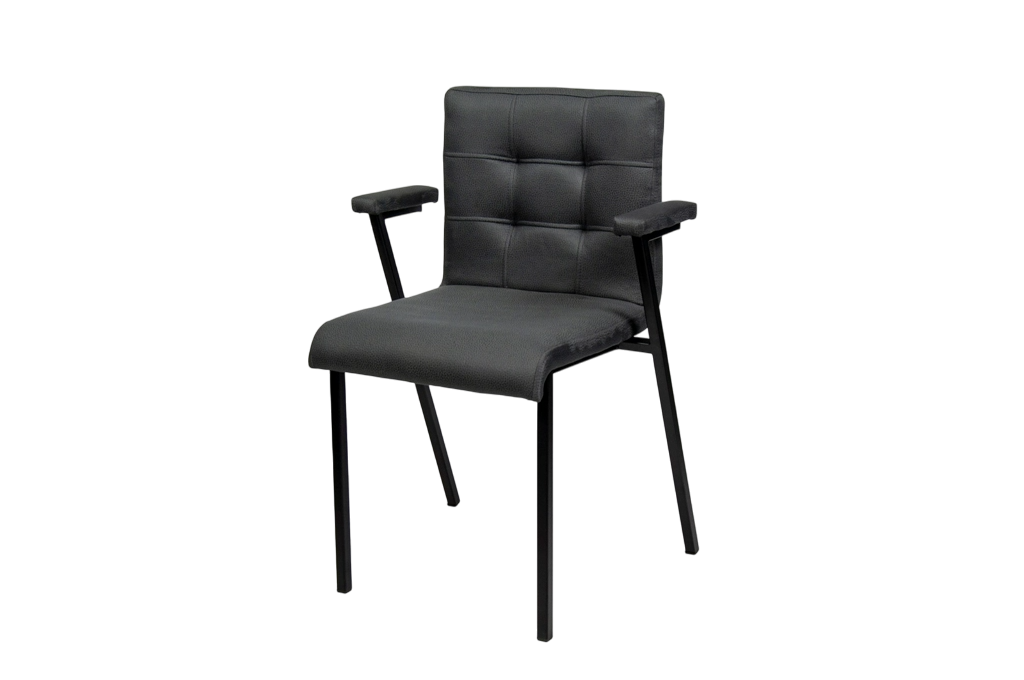 Стул выполнен из стальной трубы квадратного сечения 20х20 мм. Каркас может окрашиваться черной порошковой краской или покрываться бесцветным лаком (цвет Лофт), что позволяет проявить на каркасе следы обработки металла. Стул имеет мягкую основу с каретной стяжкой и может быть обшиты любой тканью на выбор заказчика. Все стулья серии оснащены пластиковыми подпятниками. Стул штабелируется.