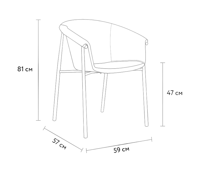 - Размер: 570х590х810 мм, h посадки - 480 мм