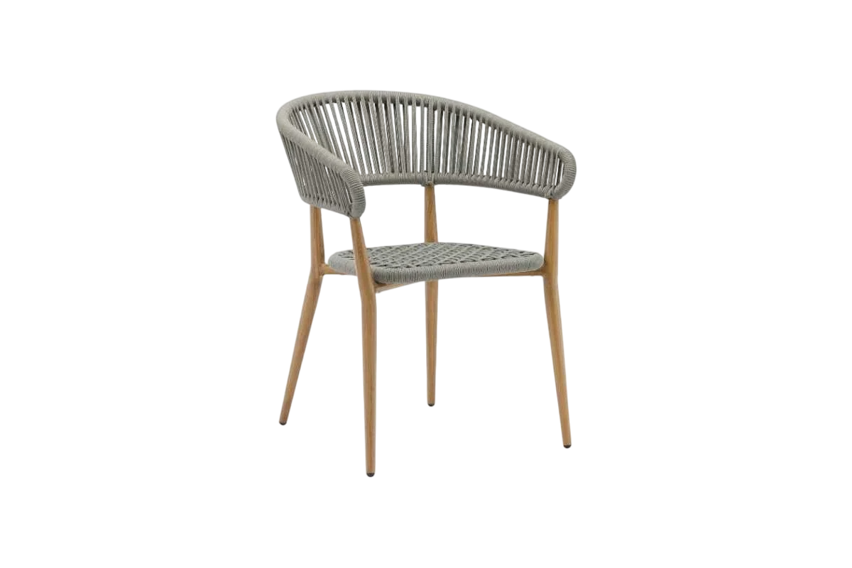 Сидение и спинка кресла выполнены из роупа диаметром 6 мм светло-серого цвета, что придает креслу современный и стильный вид. Сиденье обеспечивает мягкость и комфорт при использовании.