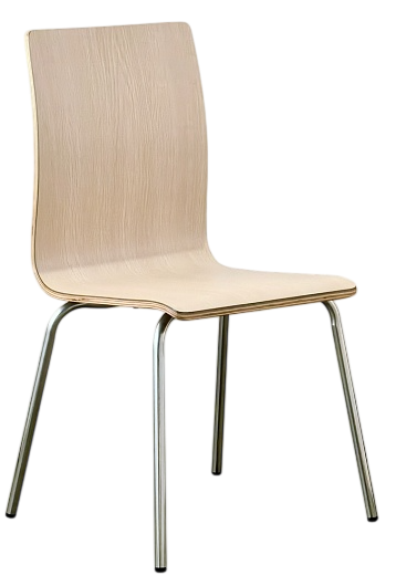 Стул металлический. Каркас - нержавеющая сталь полированная до зеркального вида. Спинка и сиденье - жесткое. Сиденье - ламинированная фанера. Цвет: бук.