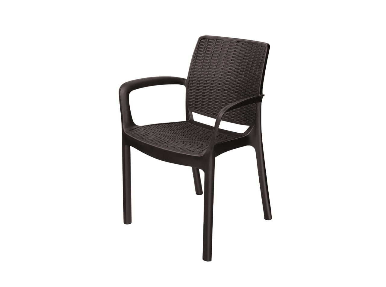 - Описание: Стул изготовлен из первичного полипропилена с добавлением стекловолокна. На сидение и спинке имитация плетения под ротанг. Цвет на выбор - бежевый, шоколадный, серый.
